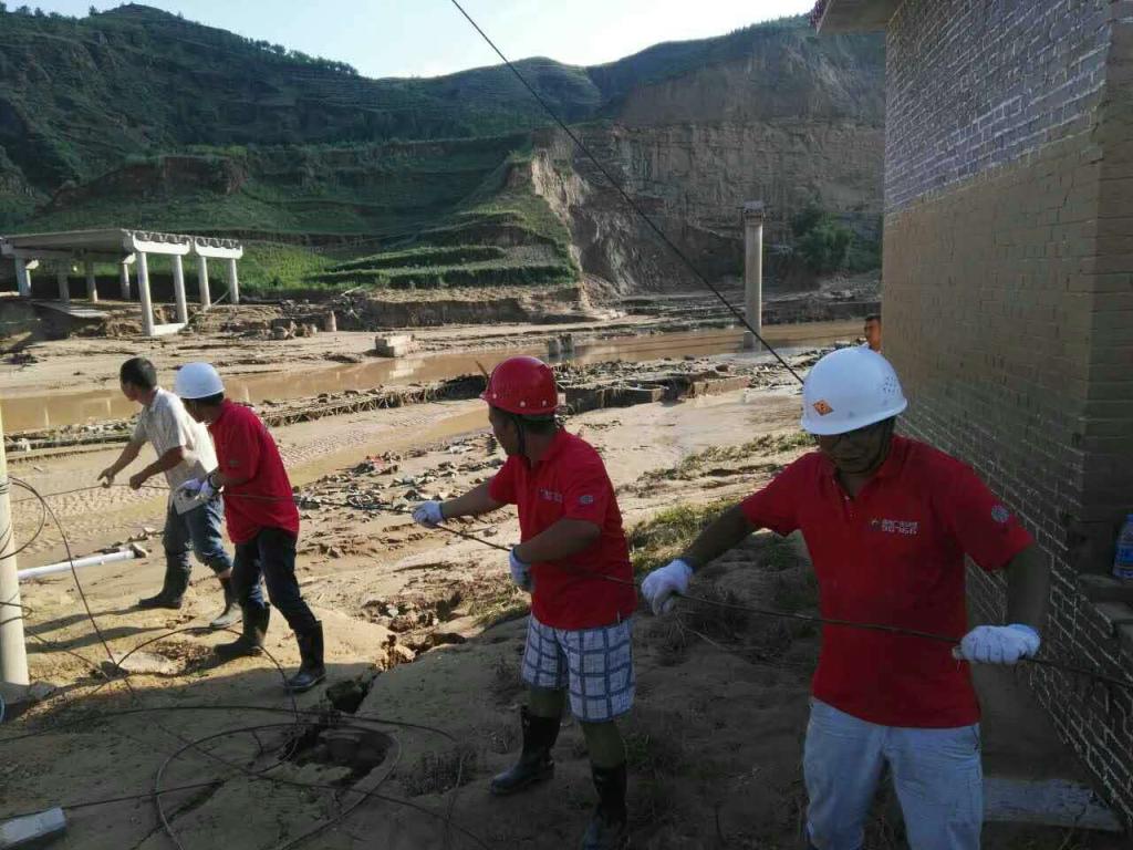 7月25日晚,绥德县遭受了百年一遇的特大洪水,公司传输线路受损严重。灾情发生后,绥德支公司迅速组建应急抢险小组,连夜疏通办公区域下水道、严密监视机房、发电机房设备设施等并积极部署抢险救灾。与此同时,支公司积极同省、市公司及绥德县委、县政府保持联系,组织抢险小组展开了地毯式排查,全力抢修传输线路。
