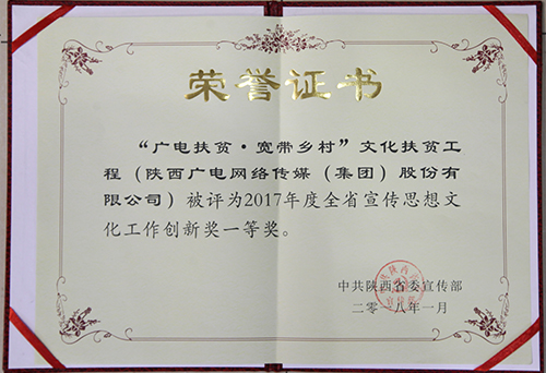 近日,从陕西省委宣传部传来喜讯,陕西广电网络“广电扶贫•宽带乡村”文化扶贫工程喜获2017年度全省宣传思想文化工作创新一等奖。