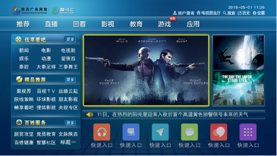 8月22日,陕西广电网络高清互动电视首界面实现优化升级。