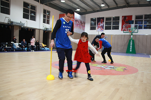 篮球亲子嘉年华活动在全员参与的拍拍舞中拉开序幕。活动现场准备了“篮球”保龄球、袋鼠跳、两人三足、手脚并用、技巧运球、自投自抢等游戏项目,每组家庭通过游戏互动,在运动中感受亲子间的温情时刻,被员工们纷纷点赞。