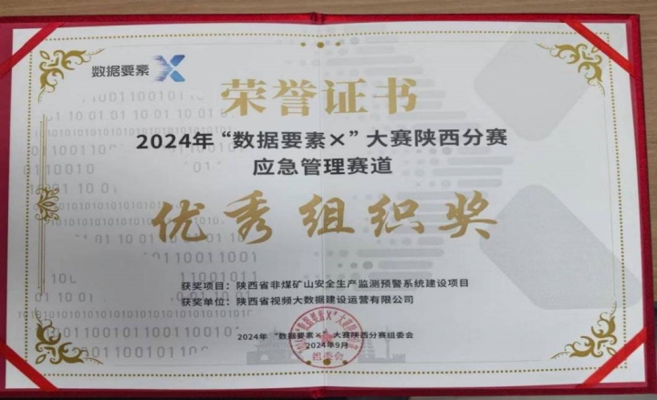 陕西省视频大数据建设运营有限公司自主研发的“陕西省非煤矿山安全生产监测预警系统建设项目”在全省200余支参赛团队中脱颖而出,荣获大赛“应急管理赛道优秀组织奖”。