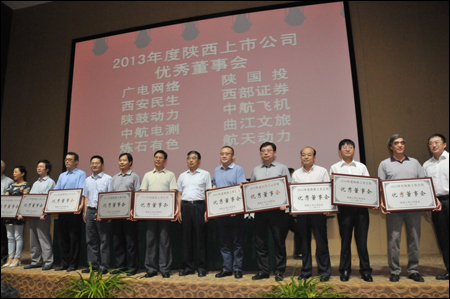 6月25日,陕西上市公司协会“2013年度优秀董事会”颁奖典礼隆重举行。公司董事会在陕西辖区四十家上市公司中以综合评分第一的成绩当选“2013年度陕西上市公司优秀董事会”。公司董事、总经理刘进代表公司董事会出席颁奖典礼并领奖。