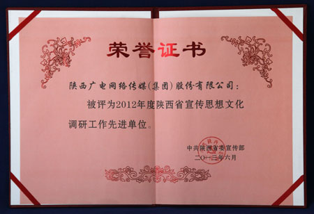 日前,在2012年度陕西省宣传思想文化调研工作专项评比中,公司被评为先进单位。