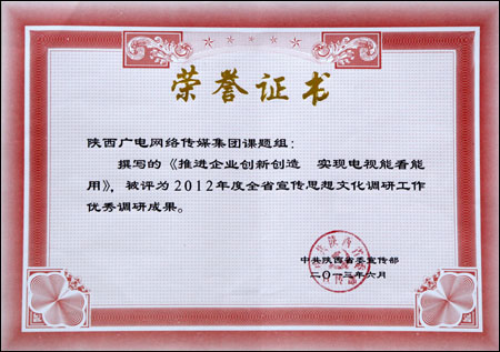 近日,公司撰写的《推进企业创新创造 实现电视能看能用》调研报告被评为2012年度全省思想文化调研工作优秀调研成果。同时,公司党委书记、副董事长晏兆祥被评为2012年度全省宣传思想文化调研工作先进个人。
