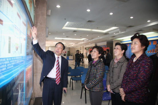 授牌仪式结束后,刘丽鸽主席一行观看了公司新业务演示,听取了公司董事长吕晓明关于公司十年改革发展历程和十二五发展蓝图的汇报。