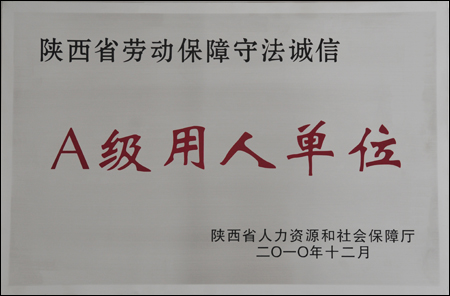 陕西省人力资源和社会保障厅授予公司劳动保障守法诚信A级用人单位光荣称号,是对公司劳动用工及社会保障工作的充分肯定和高度评价,同时也为公司下一步人力资源及社会保障工作提出了更高的要求。公司相关部门部表示,将珍惜荣誉,再接再厉,严格按照劳动保障守法诚信A级用人单位的要求,不断进取,扎实工作,构建和谐,再创佳绩。