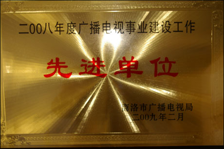 近日,在商洛市广播电视工作会议上,陕西广电网络传媒商洛分公司分别荣获商洛市广电系统2008年度“创佳评差竞赛活动最佳单位”和“广播电视事业建设工作先进单位”称号。