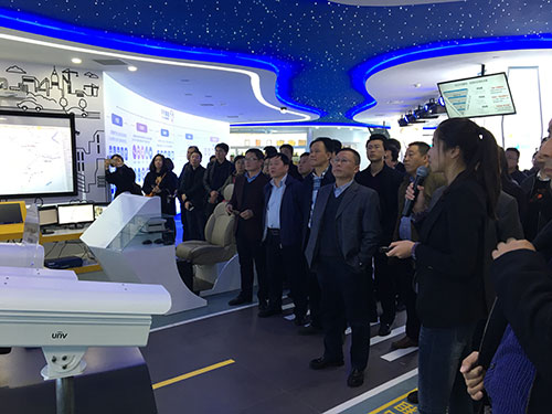 在千方科技公司业务展厅,公司干部员工听取了千方公司在智慧交通领域的发展历程、主营业务及科技、创新成果等方面的介绍,现场体验了千方公司基于“互联网+交通”的理念,在陆运、空运、水运等领域取得的丰硕成果。
