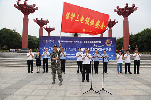 5月17日,由全国“三电办”陕西省公安厅、陕西省“三电办”主办,陕西广电网络传媒集团承办,电力、电信、移动、联通、铁塔公司陕西分公司、驻陕部队协办,相关企事业单位共同参与的“全省打击盗窃破坏电力、电信、广播电视设施违法犯罪活动”宣传启动仪式在开元广场举行。陕西广电网络积极履行社会责任,与各单位一起着力将全省保护三电设施安全宣传活动推向高潮、引向深入。
