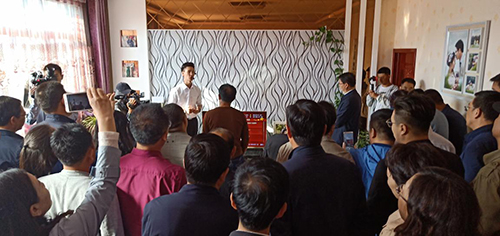 | 在上良村村委会办公室观看党政集中宣传平台演示 |