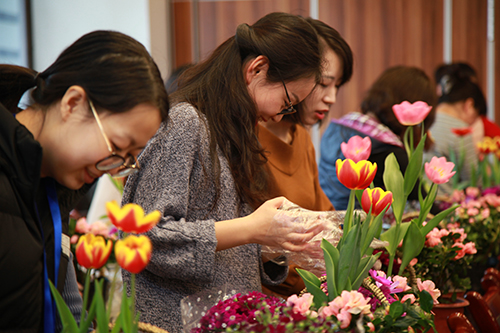 活动现场,公司女工委员会委员杨宁向姐妹们送上了节日的祝福,百余名女员工一起动手,用鲜嫩饱满鲜花点缀精巧的花篮,巧手下展现出一片盎然的春色。