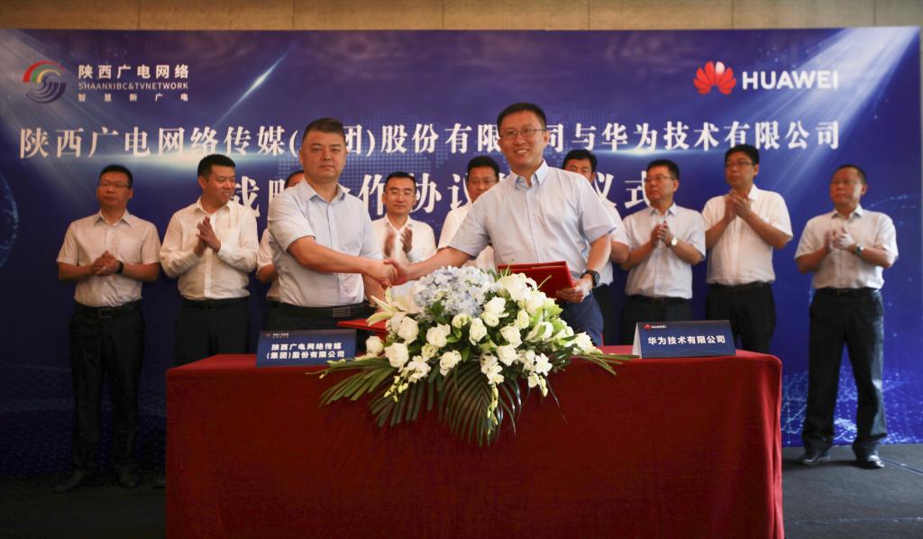 2019年7月15日,陕西广电网络传媒(集团)股份有限公司与华为签署战略合作协议,双方将在基于5G时代的智慧广电建设方面展开深度合作。陕西广电网络传媒集团董事长王立强,总经理韩普,副总经理薛朝慧、冯会明,纪委书记王铭,总经理助理樊东,华为陕西总经理赵永刚、华为陕西企业业务总经理付岩、华为陕西企业业务副总经理穆成山、杨欣、李洲洲等出席仪式。韩普、付岩代表双方签署协议。