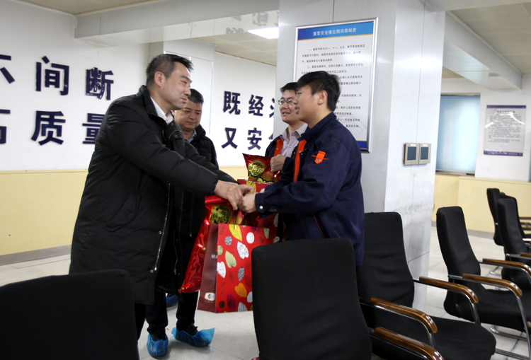 刘兵董事长、唐煜弢副主席为值机人员送上慰问品,并表达了对陕西广电网络坚守广播电视传输保障阵地的干部员工的新年问候,鼓励大家坚守岗位,守好阵地,为全省群众的新春荧屏做好保障。公司总经理韩普、工会主席白文利、总经理助理李文向两位领导汇报了春节期间全省各级机房设备运行、防火用电安全、值班排班等各方面的保障准备情况,并表示,全网已做好预案,并通过实战演练做好了充分的保障准备,全力确保全省广播电视和信息安全传输。