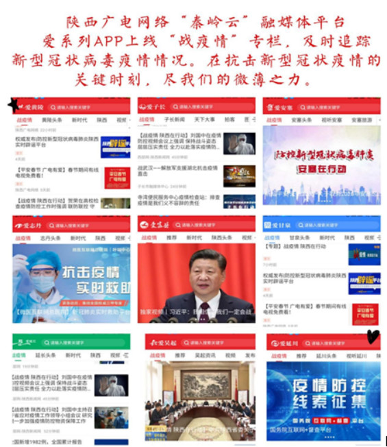 疫情就是命令,延安分公司组织技术骨干对公司搭建并投入使用的10个县区融媒体平台提供24小时技术支撑,保证平台安全平稳运转。同时,积极同各县区宣传部门、融媒体中心沟通配合,协助各区(县)融媒体中心开通“战疫情”专栏,确保疫情官方信息第一时间通过融媒体“爱”系列手机APP、秦岭云电视端、电脑端推送至广大群众,为地方政府舆情引导和广大群众获取疫情信息、防控知识提供渠道支持,为疫情防控提供了强有力的宣传支撑。