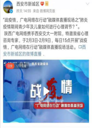 2月3日至9日,全省107个县区的融媒体“爱系列”移动客户端同步开展《“战疫情 广电网络在行动”融媒体直播现场——疫情防控中不同人群的心理调适》直播活动。