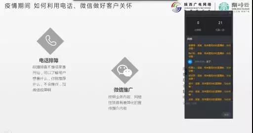 2月12日,为进一步做好疫情防控期间用户服务工作,平利支公司组织员工开展线上用户关怀活动。支公司组织员工利用电话、微信等线上沟通方式开展客户工作,并按照操作步骤、遥控器使用方式自制了如何进入教学频道,如何在首页点播教学视频,如何进入爱奇艺、爆米花影视点播等多种视频短片,帮助用户体验秦岭云教育、影视类的点播功能。