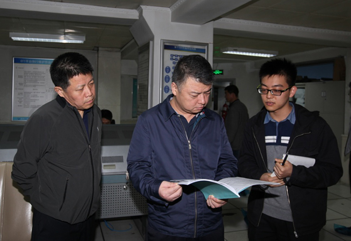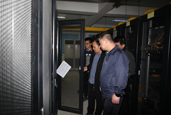 韩普总经理一行检查了中心机房供配电、应急演练、发电和网络安全维护等内容,仔细查阅了高压设备检查派工记录、2020年国庆巡检安排、应急预案、员工值班记录等,并亲切询问了节日期间值班安排及工作人员生活保障情况。