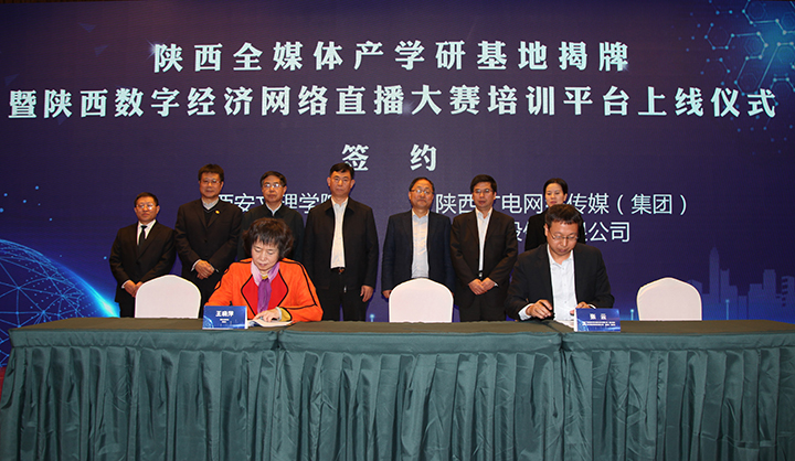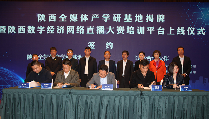 10月15日上午,由陕西广电网络传媒(集团)股份有限公司与西安文理学院共同发起成立的陕西全媒体产学研基地在西安文理学院会议报告厅举行揭牌仪式。同时,基地与陕西数字经济网络直播大赛组委会共同打造的培训平台同步上线。