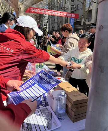 活动中,公司员工与省通信管理局志愿者、反诈民警、运营商工作人员等一起,通过播放反诈宣传片、悬挂反诈宣传海报、发放反诈宣传单、分析讲解电诈案例、开展反诈知识有奖问答等方式,为大学生讲解防范电信网络诈骗知识,宣传推广工信部“一证通查”服务及国家反诈中心 APP ,并鼓励前来参加活动的大学生共同参与到防诈、反诈志愿服务中,引导形成“反诈骗 懂防范 你我齐行动”的宣传热潮。