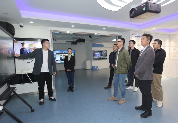 何炜一行首先参观了多媒体数字演示厅,重点了解了陕西广电网络在媒体融合发展、“雪亮工程”、文化数字化、数字乡村等方面的创新工作成果。