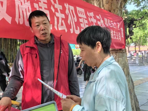 蓝田支公司配合县公安局国保大队、反诈中心等单位开展“三电”设施保护和反诈宣传活动,向群众普及“三电”设施安全保护的有效措施、预防电信网络诈骗的有效手段等,为营造全民保护“三电”设施安全,营造防骗、主动拒骗的良好社会氛围,创建“和谐平安蓝田”的良好社会环境贡献了广电力量。