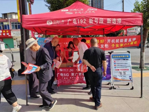 渭南分公司本级多点谋划,全员参与,分别在中心广场、朝阳公园设置展台,设立“公益助老”服务岗,为群众发放防范电信网络诈骗宣传手册、矿泉水、纳凉扇等,讲解广电业务,对用户提出的意见和建议现场记录并处理。此外,分公司班子成员还通过直播访谈的形式进行了线上直播宣传。晚上,分公司举办了5G推介晚会,群众现场体验了千兆wifi、电视“开机进直播”功能、5G冲浪等业务,营造了良好的活动氛围。