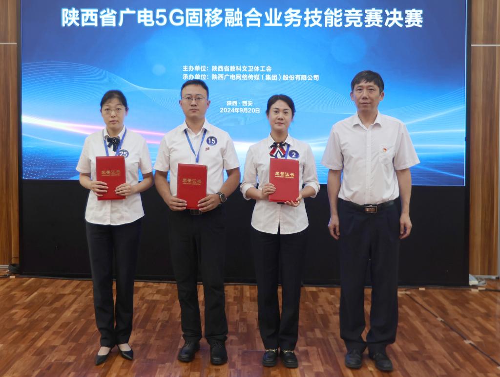 经过激烈角逐,西咸公司张溪溪荣获2024年陕西省广电5G固移融合业务技能竞赛信息通信业务员工种个人一等奖;渭南分公司陈欣、汉中分公司秦蕊荣获信息通信业务员工种个人二等奖;咸阳分公司景项链、安康分公司王小勇、榆林分公司房艳梅荣获信息通信业务员工种个人三等奖。安康分公司、渭南分公司、商洛分公司分获团体一、二、三等奖。咸阳分公司、延安分公司、西安分公司荣获优秀组织奖。