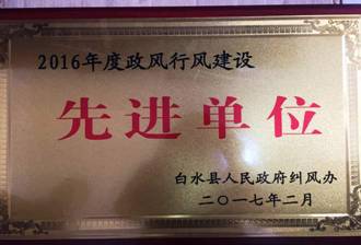 2月22日,白水支公司被县政府纠风办授予“2016年度政风行风建设先进单位”荣誉称号,至此白水支公司已连续三年获此殊荣。