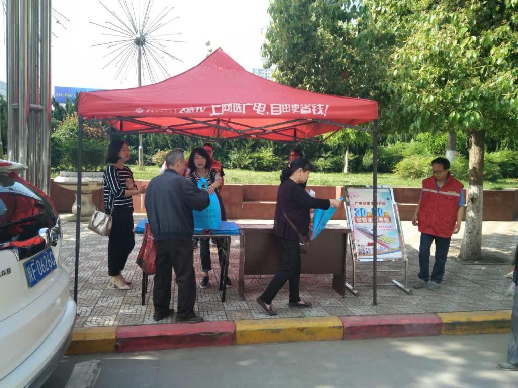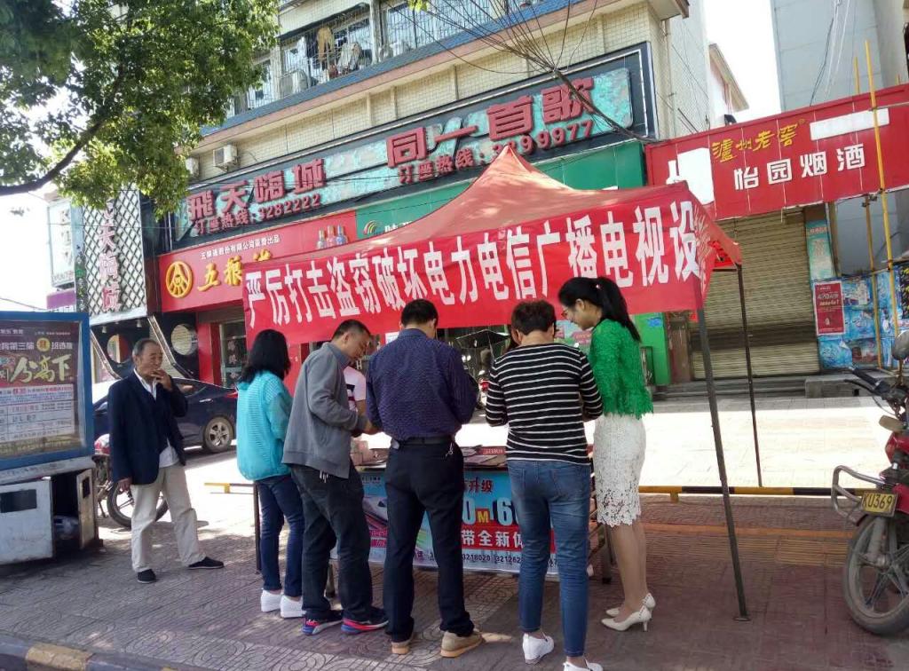 5月17日上午9时,汉中全市“三电设施”保护条例宣传活动在市中心广场举行,分公司本级结合当前正在进行的地推宣传覆盖“针尖行动”,在活动现场进行普法宣传的同时,通过发放宣传单,现场讲解,现场演示,引导用户“扫一扫”绑定广电网络96766服务微信号及让用户填写《客户体验信息卡》等形式,广泛宣传公司新推出的“DVB+OTT”新业务及“广电30M、60M”大带宽产品,让过往群众直观地体验广电秦岭云·盒带来的全新收视感受,引起了群众的浓厚兴趣。