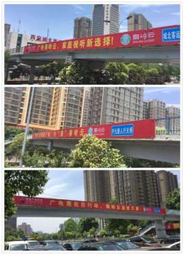 为快速铺开“秦岭云”业务先传推广,掀起新业务发展高潮,从6月6日起至6月17日,在西安市二环及中轴线十座人行天桥悬挂“秦岭云”宣传横幅,为新业务宣传造势。