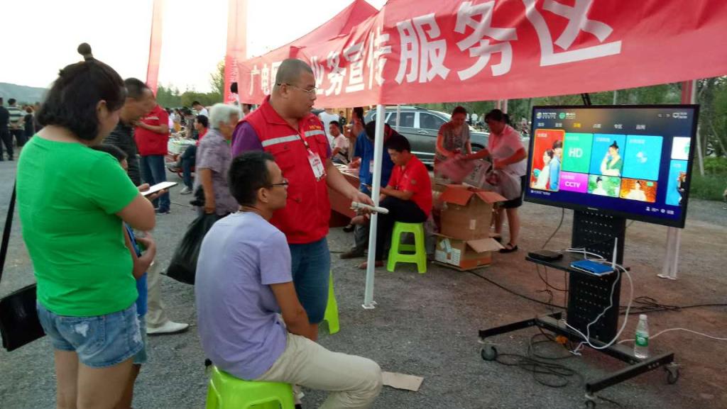 活动现场,支公司利用各种形式积极宣传推广公司业务,在设立的业务咨询台前,咨询和办理公司业务的群众络绎不绝,工作人员积极向群众详细介绍公司“秦岭云”盒、30M/60M大带宽产品,指导群众登录公司微信营业厅收看“三秦舞王”同步资讯。