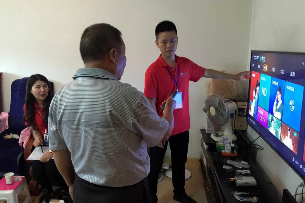 秋雨中,骤降的气温并没有打消实战营人员的热情,大家身穿统一的广电红T恤,热情的服务赢得了用户的肯定。家住广场小区的张阿姨因为孙女玩耍时弄乱了机顶盒线路,正准备电话报修,恰好遇到工作人员上门推介业务,经过了解,张阿姨将原有的标清机顶盒升级换购秦岭云,张阿姨高兴的说:“你们广电网络的服务就是好,一有优惠政策就主动来我们用户家里告知,还帮我们检修线路。这价格越来越实惠了,节目还变多了,我现在连门都不用出就能缴费、升级,用咱们的新盒子。”