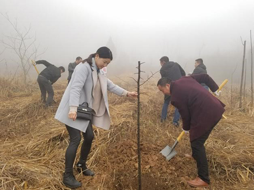 镇坪支公司用了一上午时间在上竹镇中心村的义务植树现场按照植树要领,分组施工、相互配合,严格按照标准要求展开种植。