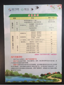 彩页分为正反两面,正面将公司的基本产品和增值产品进行分类,并明确标价,同时温馨提示客户“部分增值节目需另外付费,请用户谨慎操作,避免因家中的孩子随意点播而产生额外费用”;彩页背面将“央视频道”、“本地频道”、“购物频道”、“卫视频道”、“付费频道”、“高清频道”进行了梳理排序,便于客户迅速调换至所需频道。