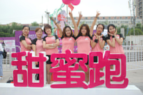 亮点二:长安直属公司21名“铿锵玫瑰”,身穿公司统一的LOGO标识运动服,为赛场增添了一抹“粉色”。