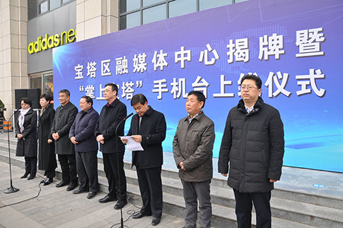 11月23日上午,延安市宝塔区融媒体中心正式挂牌成立,延安市委常委、宝塔区委书记刘景堂、市委宣传部副部长许怀金为宝塔区融媒体中心揭牌,刘景堂、许怀金、延安分公司总经理张延兵等共同按下“掌上宝塔”手机台启动球。