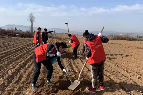 乾县支公司全员自带劳动工具,分组开展植树工作,严格按照“三埋两踩一提苗”的植树规范操作,确保栽一棵,活一棵。经过一上午紧张有序的植树劳动,共栽树苗100多棵,为乾陵再添了新绿。