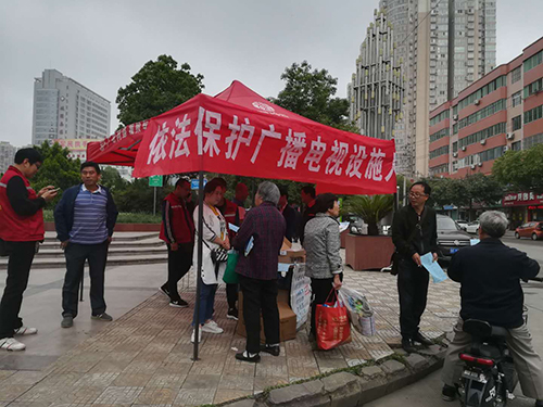 城固、略阳、勉县、西乡、镇巴、南郑等支公司分别在当地以设立咨询台、悬挂横幅、摆放宣传展板、向广大群众发放通信设施保护宣传资料等形式,向市民宣传“三电”安全保护知识,讲解广播电视设施保护条例及严厉打击非法安装和销售卫星地面接收设施行为的法律法规,鼓励广大群众积极举报破坏“三电”的违法犯罪行为,使广大群众认识到“三电”设施的重要性。在活动现场,各支公司工作人员邀请过往群众现场体验公司新版业务套餐及大宽带产品,让用户现场感受广电网络产品优势。