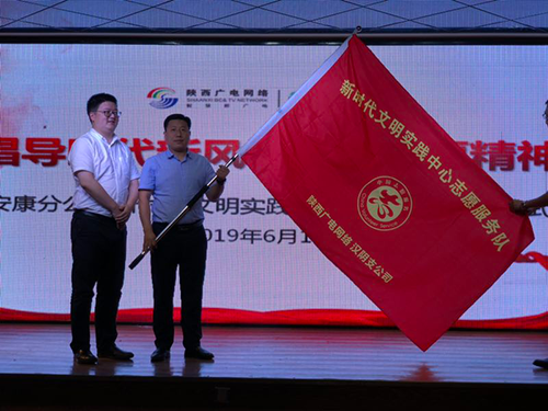 6月13日,安康分公司举行了新时代文明实践中心志愿服务队授旗仪式。