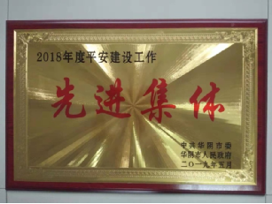 2018年度,支公司始终牢固树立安全防范意识,把平安建设工作放在首位。成立了平安建设工作领导小组,签订《安全工作目标责任书》,广泛参与华阴市平安建设工作;开展平安建设法治宣传,为维护地方社会稳定做出了积极努力。