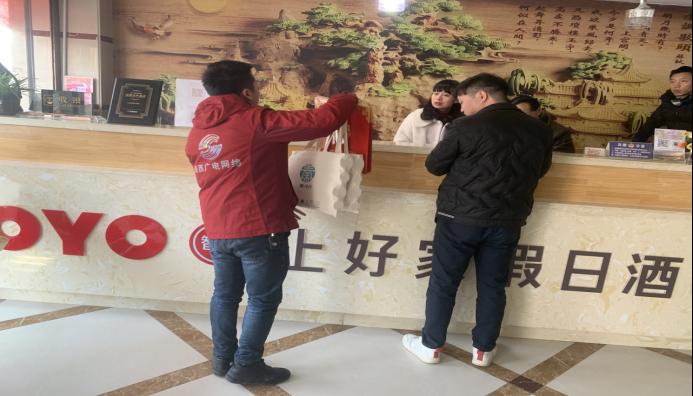 春节将至,为了进一步增进客户情感,维护客户关系,汉阴支公司组织营销人员开展鼠年新春送祝福活动,拜访宾馆酒店及集客用户,为他们送上春联及节日祝福。