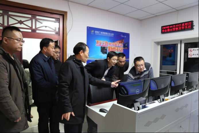 吴延旗一行先后走进分公司中心机房、新区营业厅,与坚守岗位的一线人员亲切交谈,了解广电网络业务范围,机房安全传输情况,询问分公司经营发展和春节期间人员值班、信号传输安全保障等情况。吴延旗对广电网络铜川分公司所取得的成绩给予肯定。同时,他希望分公司要加大改革创新力度,结合当前重点项目“雪亮工程”,探索5G通讯网络新模式,深入推进融合媒体建设,努力形成融媒体发展新格局。