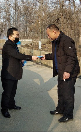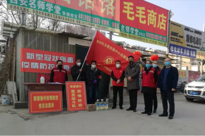 华阴支公司帮村书记和三名驻村党员发挥模范作用,积极配合帮扶的新建堡村开展疫情防护知识宣传、消毒用品购置、参加村上的疫情防控值班等防控工作。