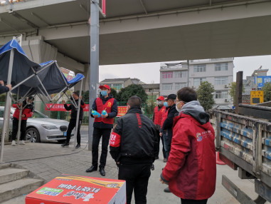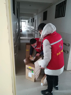 2月6日,安康分公司党员领导干部带领6名志愿者为印染社区、油坊村社区送去帐篷、医用免洗洗手液、方便面、宣传横幅等物品,以实际行动慰问坚守在疫情防控一线的街道社区人员。
