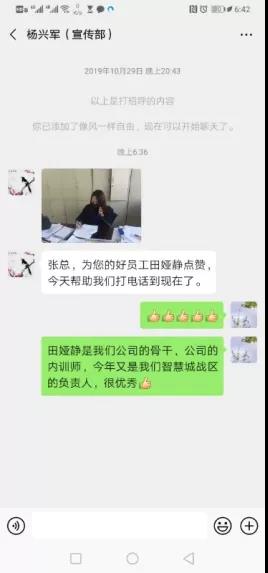 “张总,为您的好员工田娅静点赞.....”——这是元宵夜长安区委文明办副主任杨兴军给长安直属公司总经理发来的表扬信,简短的语句包含了对长安直属公司智慧城城网战区经理田娅静任劳任怨、勇担疫情防控职责的充分肯定和对心怀大爱、不畏艰险、担当使命的广电网络人的信任与赞扬。