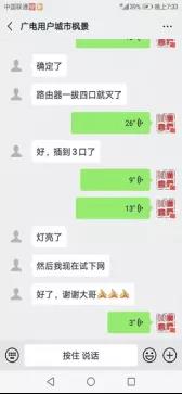 2月10日晚上6时许,宝鸡传媒公司网格维修人员高生阳接到用户报修宽带故障。由于疫情影响,小区对出入人员严格管控,维修人员不便进小区上门维修。特殊情况特殊对待,高生阳同志与用户电话沟通后加用户微信,采用视频加语音的沟通方式,指导用户自行排查故障,最终解决故障。