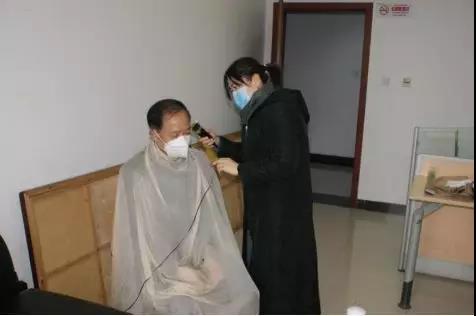 2月20日,武功支公司经理家属黄德平带着理发工具来到咸阳分公司,为坚守在工作岗位的员工义务理发。