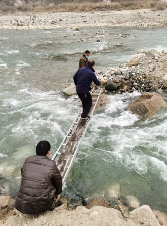 子午镇民新村地理位置偏远。维修人员无桥过河,就搬石块、找木板搭便桥,翻山跨河寻找故障点。经过艰难的排查,终于在与洋县交界的桑溪河处找到光缆断点。维修人员对光缆进行了熔接,又对该段线路进行了整理升高,随后又立即赶往子午镇分前端机房测试信号指标。经过数小时奋战,子午镇200余户用户网络信号全面恢复,做到了疫情防控、维护维修两不误。