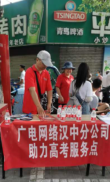全国高考日,汉中分公司及各支公司分别在当地考点外设立高考服务点,为高考学子加油鼓劲。