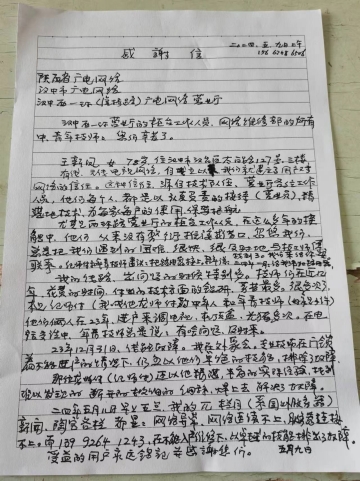 近日,一位78岁的老年用户来到汉中分公司西环路营业网点,送来一封热情洋溢的感谢信,对公司多位工作人员认真负责的工作态度和对老年人的热情周到服务表示感谢。